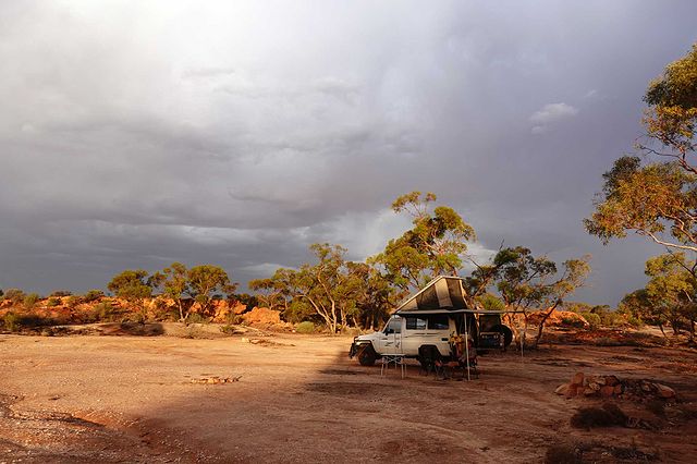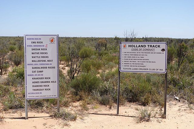 Hits: 13Der Holland track ist eine historische 4 WD Strecke mit Südwesten Australiens. Dieser Track wurde von John Holland gebildet als Verbindung zwischen den Goldfeldern und die Küste des Südwestens (Von Broomehill nach Coolgardie). Der Track führt über Buschland und über schöne Wälder. 1992 wurde der Track als 4 WD track freigegeben. Und im Jahre 2000 wurde der Track durch den Toyota Landcruiser Club von Western Australien völlig neu beschildert. Der Track führt von Bereits vor mehr als 10 Jahren sind wir diesen Track für einige Kilometer gefolgt. Wir haben in Coolgardie begonnen und sind ihn südwärts gefolgt. Es hat dann jedoch angefangen zu regnen, und der Track wurde mit dem Regen sehr lehmig und rutschig, sodass wir den Track wieder verlassen haben. Da wir nun wieder im Südwesten waren, hatten wir die Idee den Track zu nehmen um langsam wieder zurück Richtung Alice Springs zu fahren. Von Esperance her haben wir noch eine Nacht im Stokes NP verbracht, sozusagen, um uns vom Strand und von der Küste zu verabschieden, und dann sind wir über Lake King über den Holland Track nach Kalgoorlie gefahren. Obwohl wir die letzten Wochen eher bei kühleren Temparaturen verbracht haben, hat sich dies ab Lake King schlagartig geändert. Der Thermometer hat von einem Tag auf den anderen, bzw mit jedem Kilometer, den wir nördlicher kommen eine schon fast unangenehme Höhe erreicht: 30, 35, 40 °C. Am ersten Tag haben wir uns von der Hitze etwas erschlagen gefühlt. Zum Glück wollten wir die nächsten Tage doch so ziemlich im Auto verbringen, sodass wir froh waren in der Fahrkabine eine Klimaanlage zu haben.